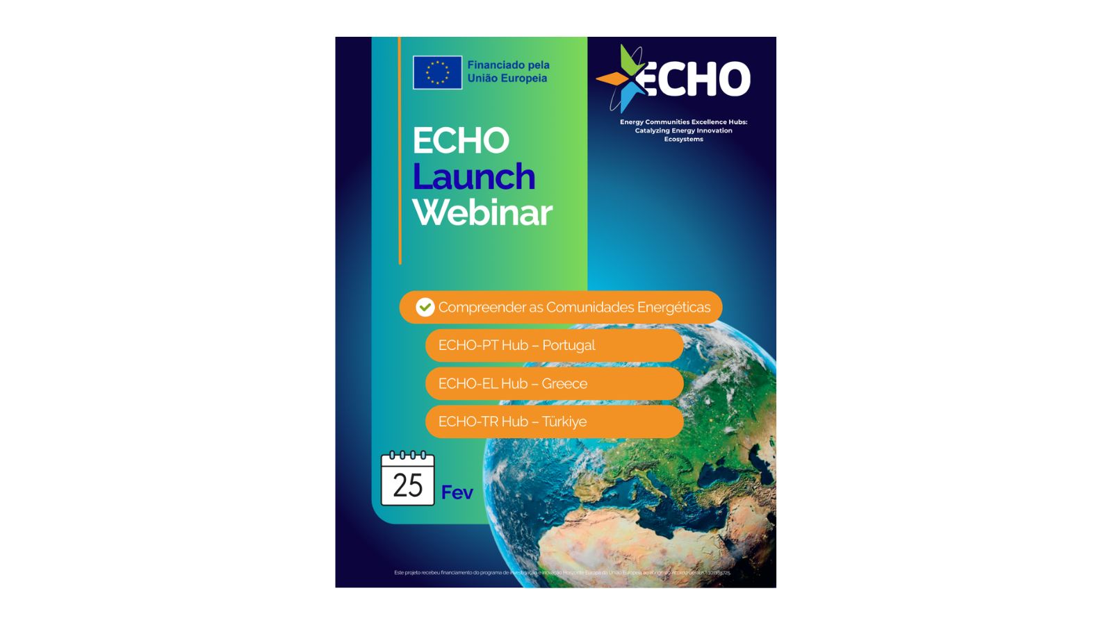 Webinar de lançamento dos Centros de Excelência das Comunidades de Energia ECHOComunidades de energia como instrumentos de participação cidadã, governação local e promoção de uma transição energética mais justa e inclusiva.