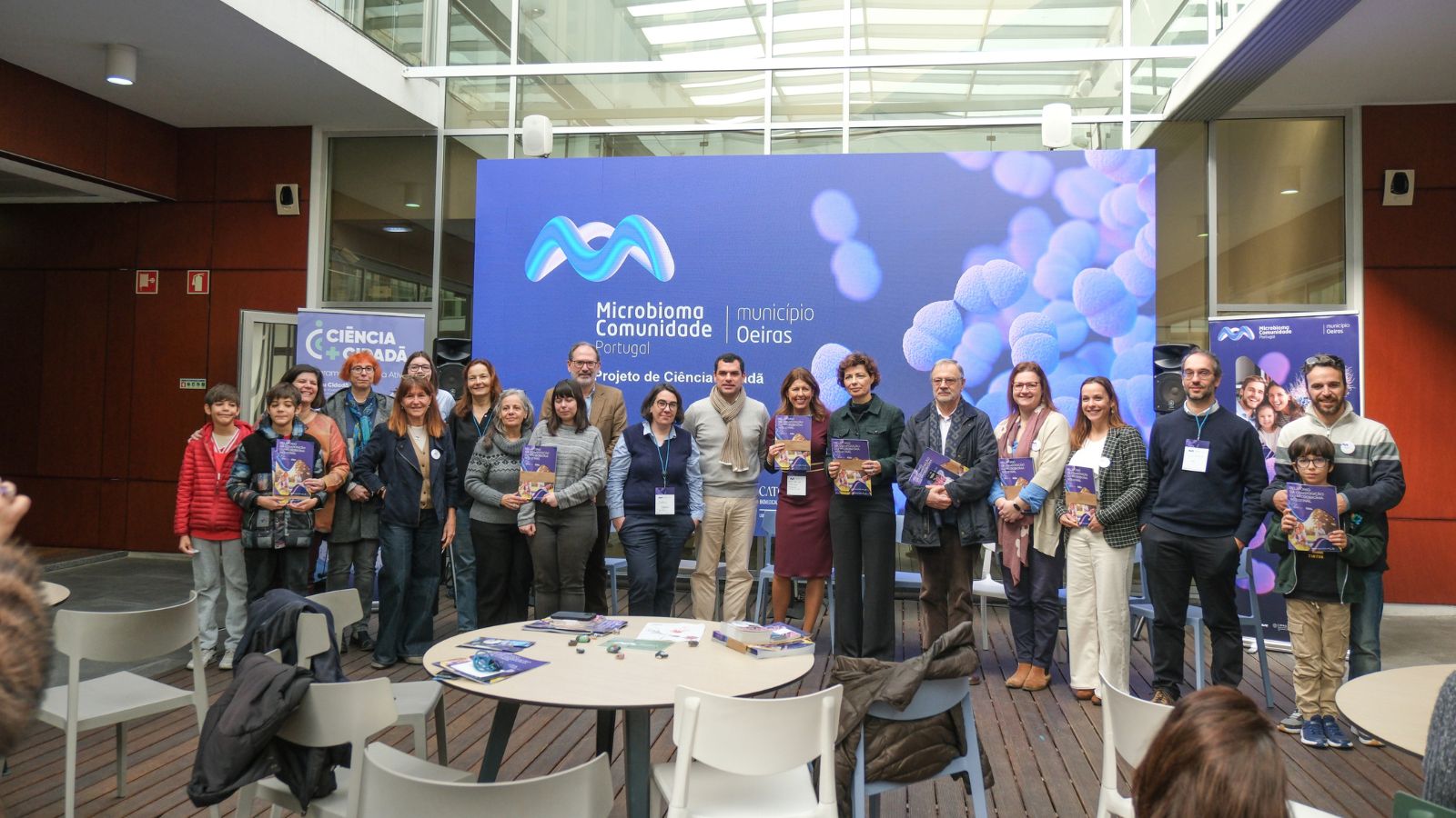 Sessão de encerramento do projeto de Ciência Cidadã Microbioma Comunidade PortugalNa mesma ocasião foi inaugurada a exposição 'Bactérias que habitam o nosso intestino', integrada no Programa Ciência + Cidadã em parceria com o Município de Oeiras.