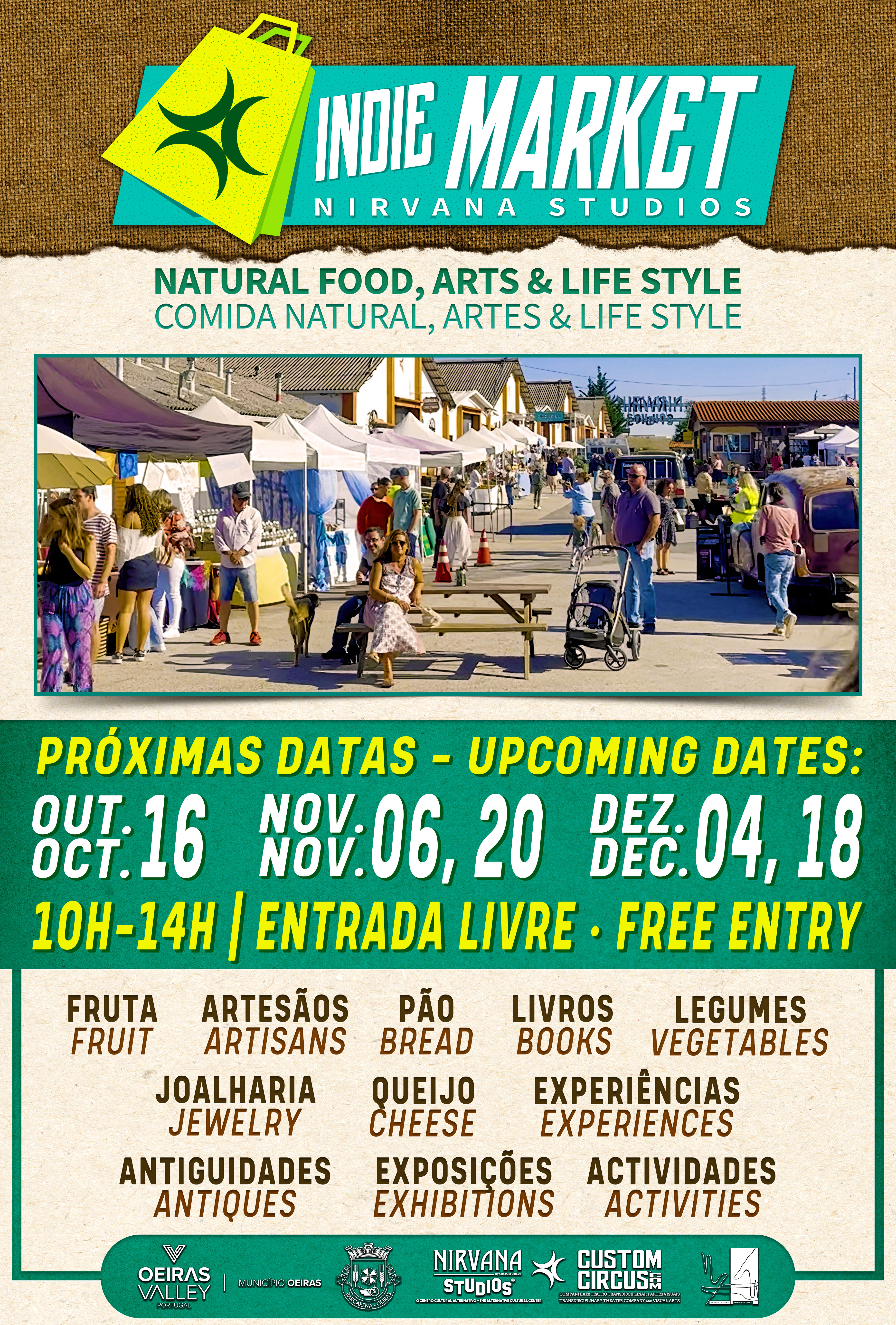O Nirvana Studios, em Barcarena, recebe, a partir de 2 de outubro, entre as 10h e as 14h, a primeira edição do Indie Market. O mercado, que conta com apoio do Município de Oeiras, irá estender-se até 18 de dezembro.