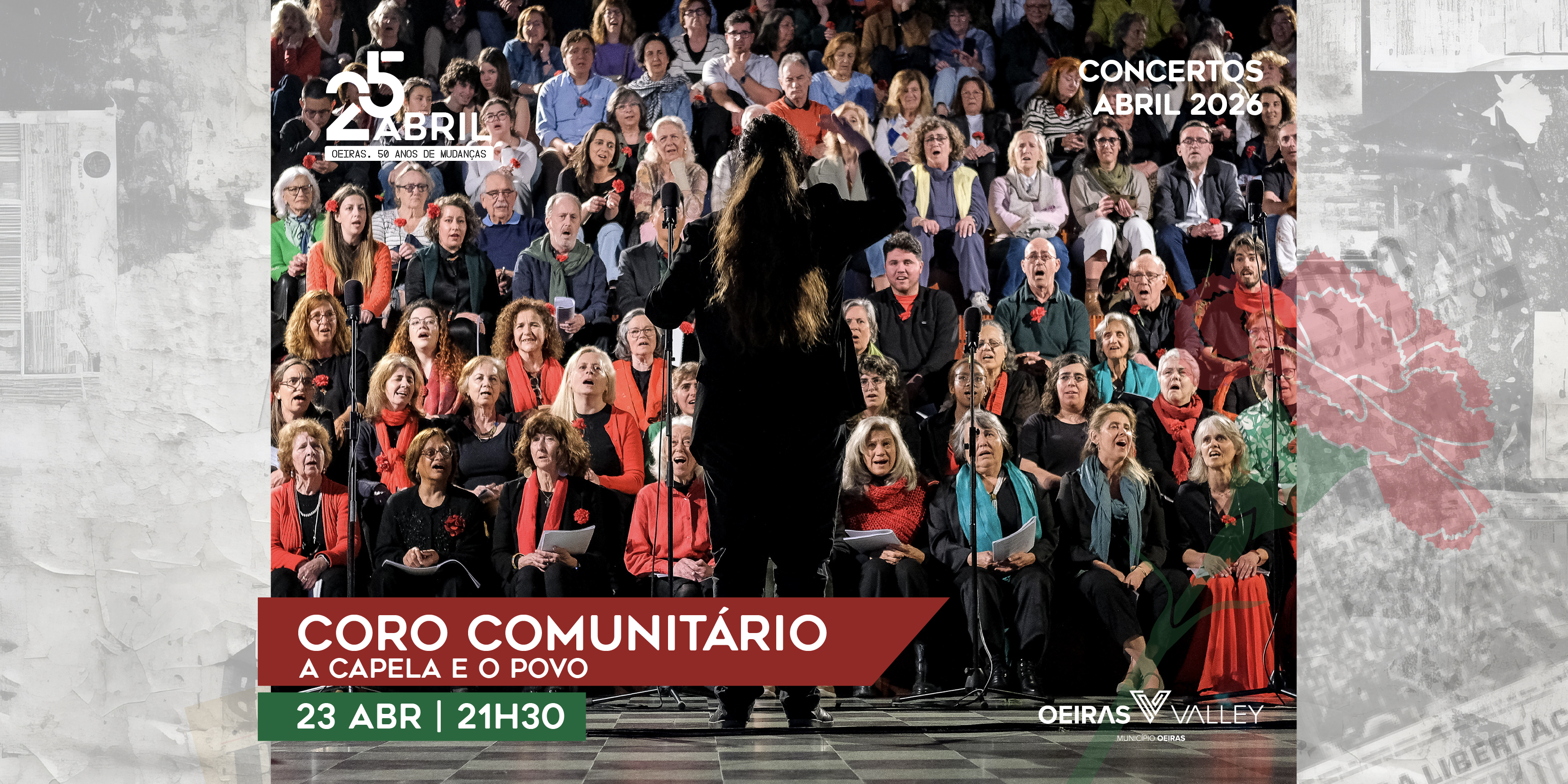 O Coro Comunitário de Oeiras 'A Capela e o Povo' também vai estar presente nesta celebração, no dia 23 de abril, às 21h30, na Escola Secundária Luís de Freitas Branco, em Paço de Arcos, cuja transmissão poderá acompanhar através da página do Facebook do Oeiras Cultura e também no YouTube do Município.