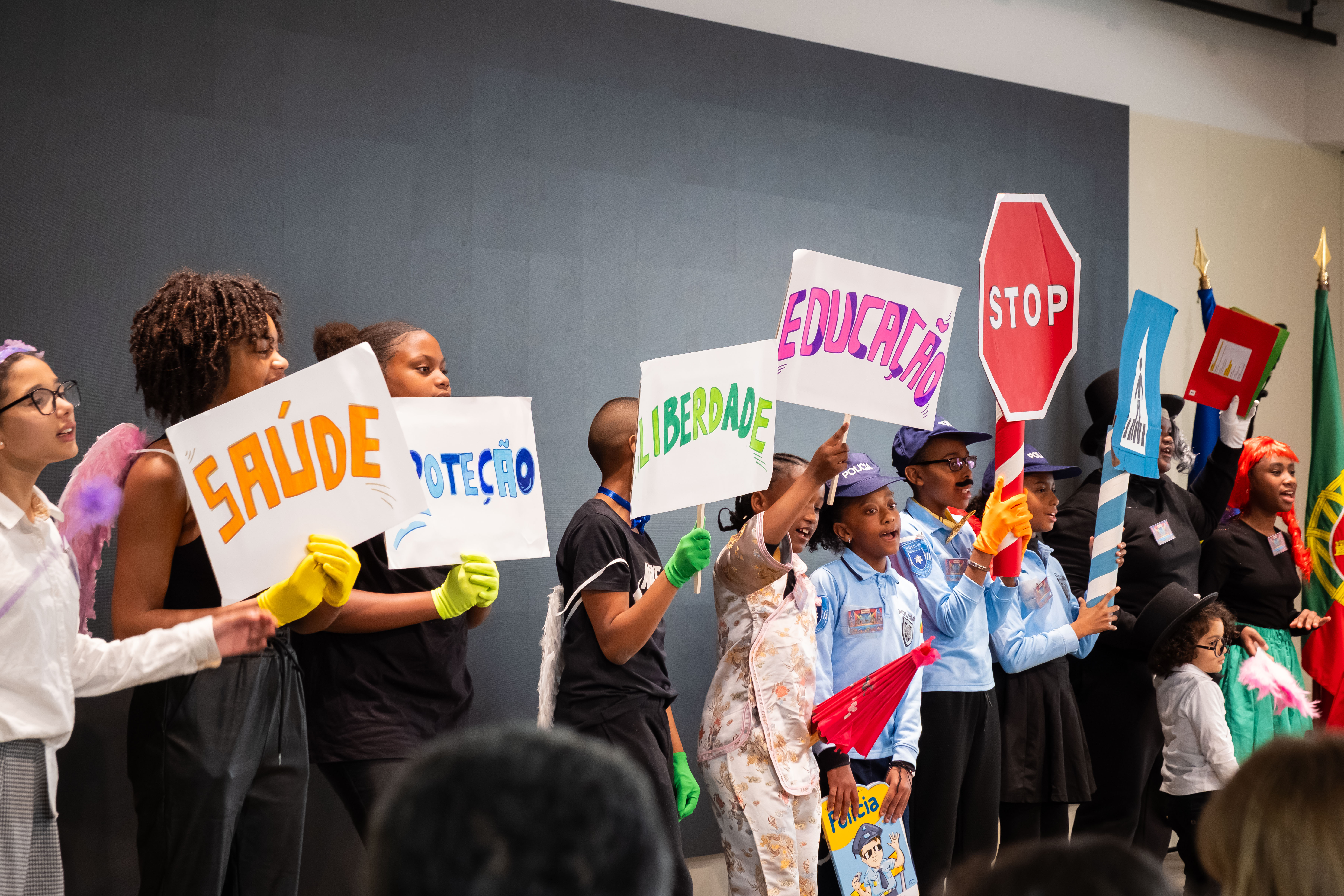 Durante a cerimónia, um grupo de crianças da Escola Básica Sophia de Mello Breyner apresentou uma peça de teatro simbólica, que homenageou o trabalho da Polícia de Segurança Pública, destacando a importância da sua presença na comunidade e o seu papel na segurança e bem-estar de todos.