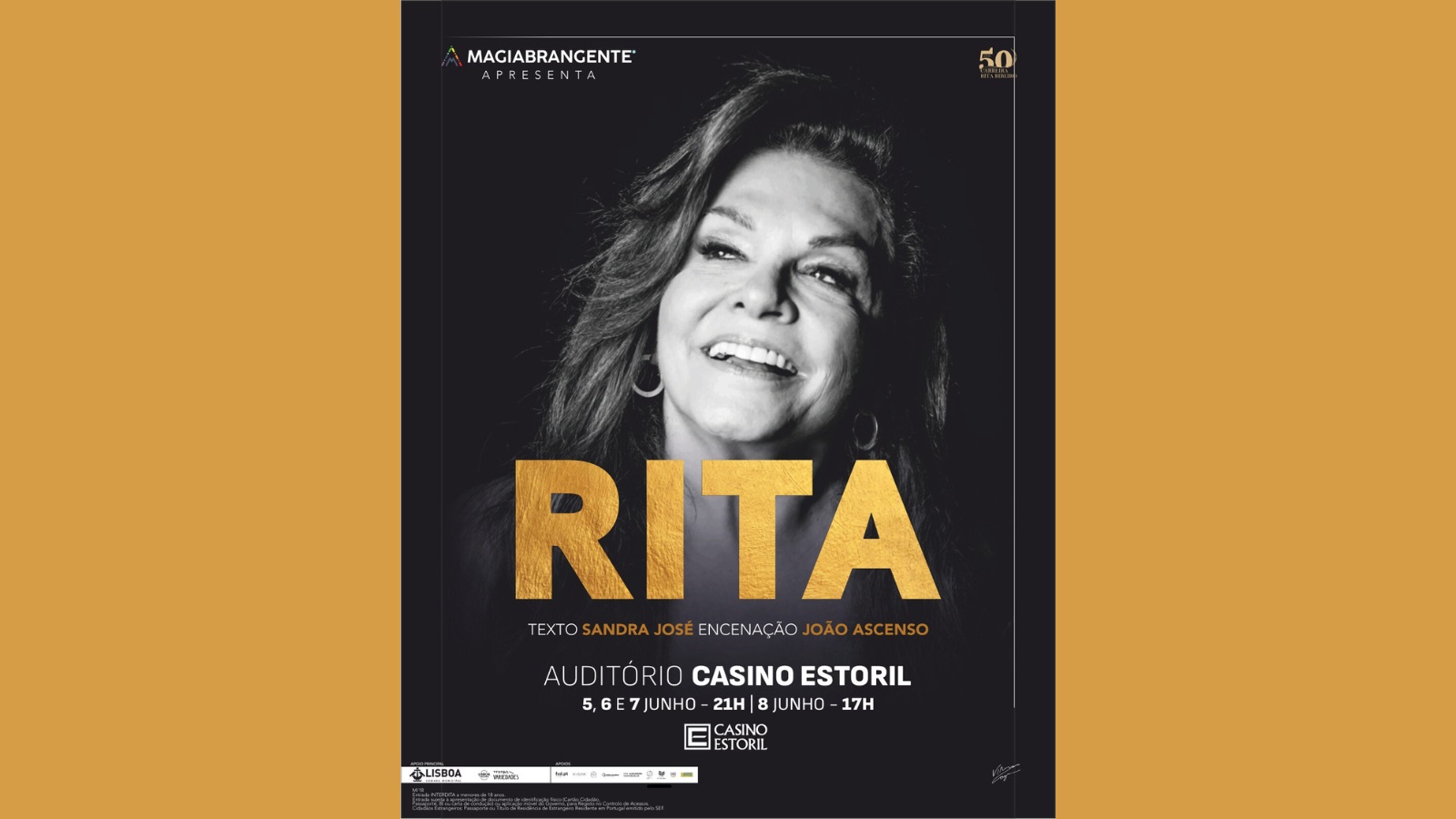 Para assinalar cinco décadas de uma carreira inteiramente dedicada ao teatro, a atriz Rita Ribeiro apresenta o espetáculo ‘RITA’, um monólogo, que vai estar em cena no Casino Estoril, entre os dias 5 e 8 de junho.